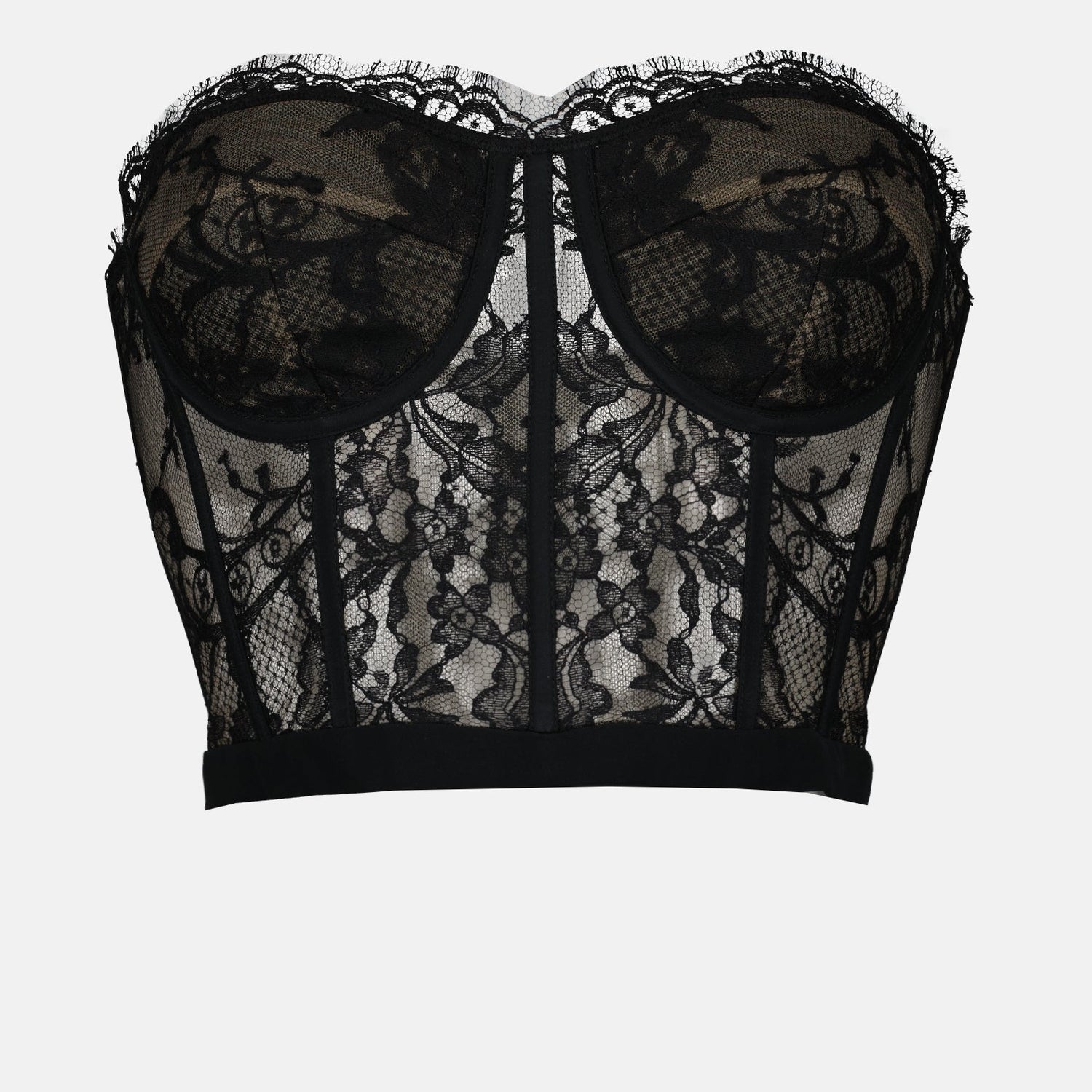Alexander McQueen, black lace corset, luxury top, women's fashion, elegant clothing