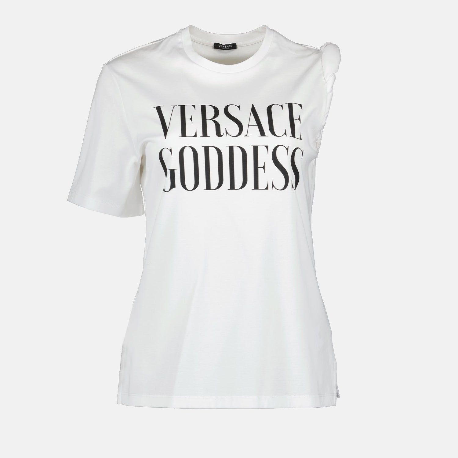 Versace, Asymmetrical T-shirt, White T-shirt, Luxury Women's Fashion, Designer T-shirt
