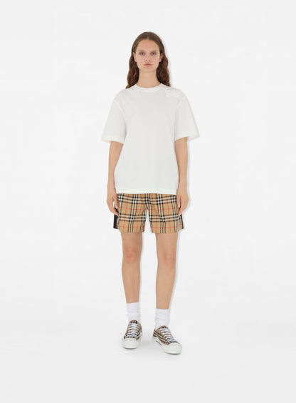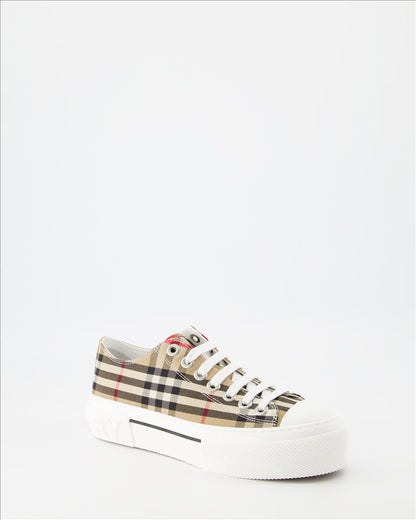 버버리 여성 체커드 캔버스 스니커즈와 함께 시대를 초월한 우아함을 경험해 보세요. 유산과 현대성이 결합된 걸작입니다. 고품질 캔버스로 제작된 이 스니커즈는 버버리의 상징적인 베이지 체크 패턴을 자랑하며, 이는 뛰어난 영국 공예와 디자인의 표식입니다. 세심한 디테일이 모든 바느질에 반영되어 스타일과 내구성의 완벽한 균형을 보장합니다.