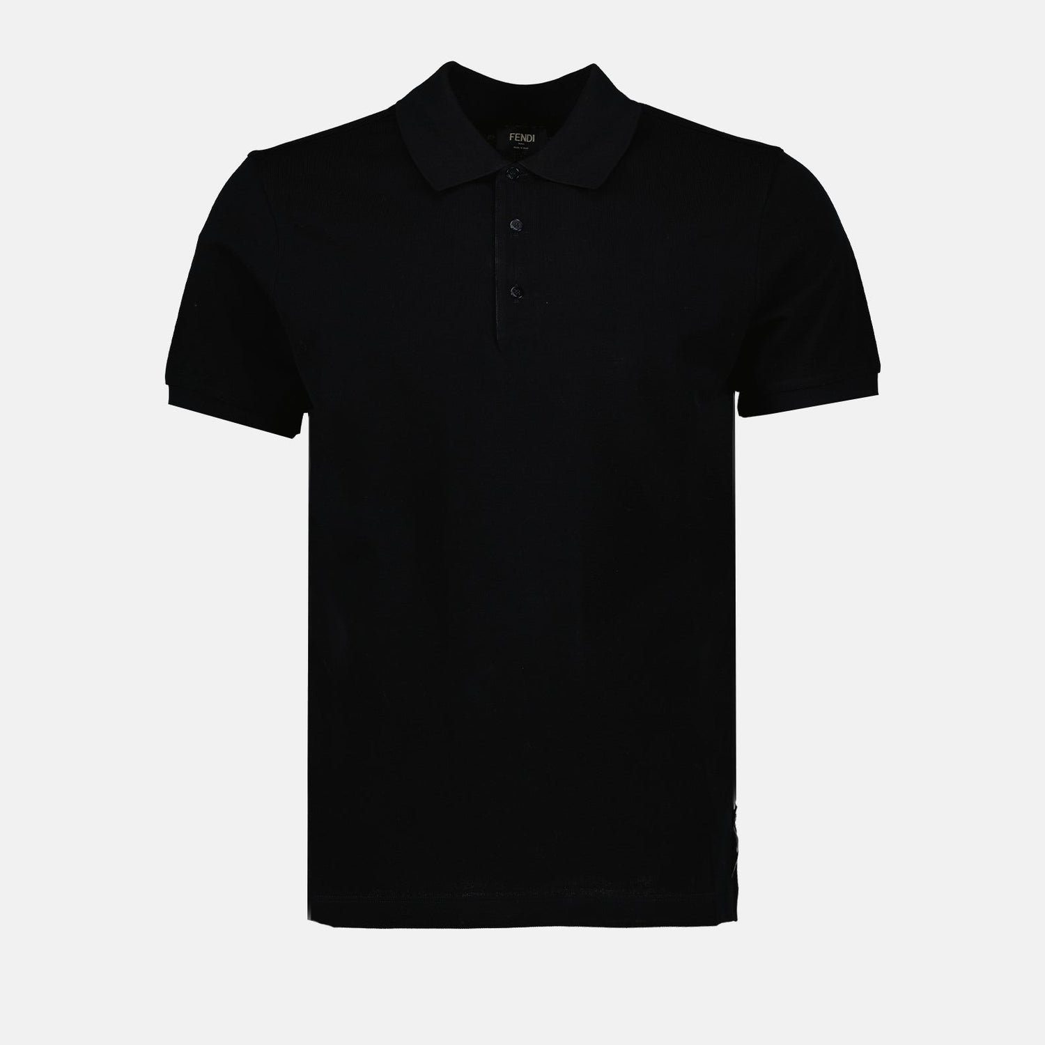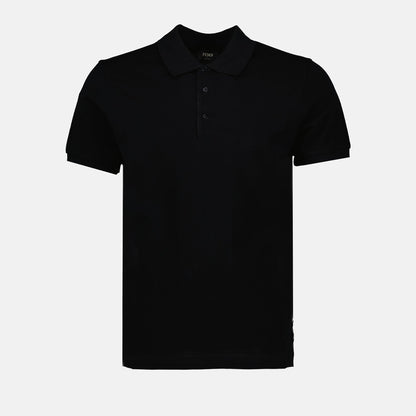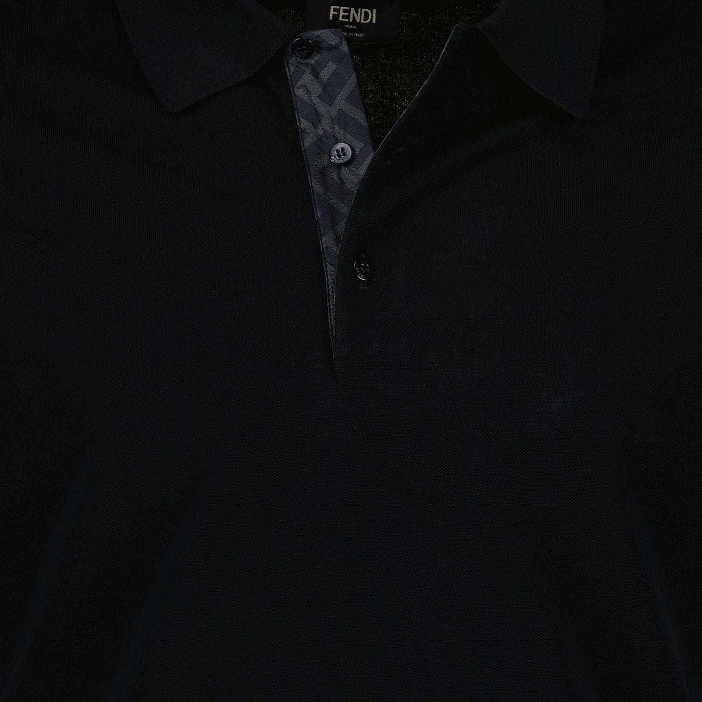 남성을 위한 FF 블랙 폴로 셔츠 - Fendi. 클래식한 칼라와 짧은 소매로 우아함을 상징하는 이 폴로 셔츠는 절제된 고급스러움을 담고 있습니다. 고급 면으로 제작되어 편안한 스트레이트 핏과 실용적인 세 개의 버튼 플래킷이 특징이며, Fendi의 아이코닉한 FF 로고 버튼 탭으로 장식되어 있습니다. 당신의 옷장에 정교함을 더하기에 완벽한 아이템입니다. • 클래식 칼라 • 짧은 소매 • 스트레이트 핏 • 세 개의 버튼 플래킷 • FF 로고 버튼 탭 • 품질 좋은 면으로 제작