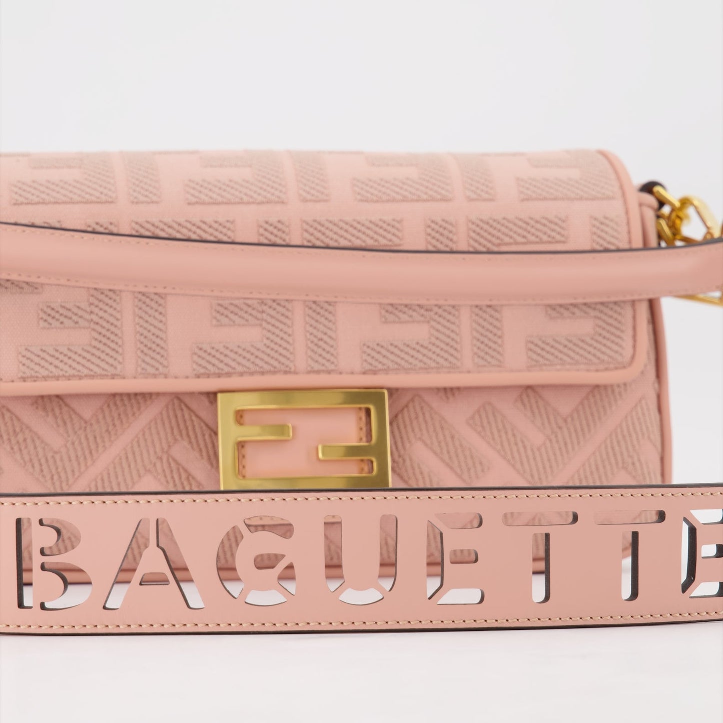 럭셔리 컬렉션에 꼭 필요한 아이템, Fendi 핑크 캔버스 바게트 백으로 우아함의 절정을 경험해보세요. 이 정교한 작품은 견고한 캔버스에 섬세한 핑크색을 입히고, 상징적인 전체 FF 프린트가 스타일과 세련됨을 자아냅니다. 다용도의 조절 가능하고 탈부착 가능한 스트랩을 특징으로 하여 핸드백으로 들거나 크로스바디로 착용할 수 있어 필요와 옷차림에 맞게 조정할 수 있습니다.