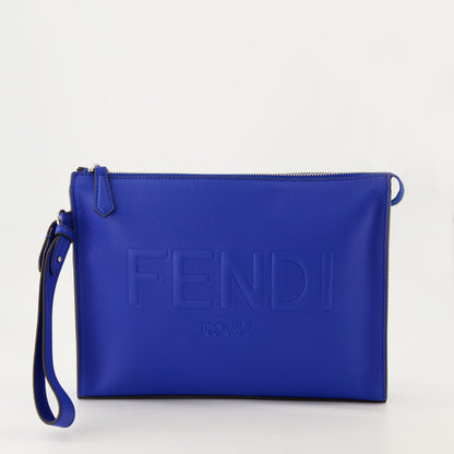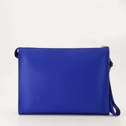 페라가모 로마의 블루 가죽 클러치의 세련된 우아함에 빠져보세요. 2024년 가을-겨울 컬렉션의 눈에 띄는 제품입니다. 세심한 주의로 제작된 이 액세서리는 고급스러운 질감의 가죽으로 만들어져 내구성과 감각적인 럭셔리 경험을 제공합니다. 중간 톤의 파란색은 다양한 스타일에 대담한 포인트를 줍니다.