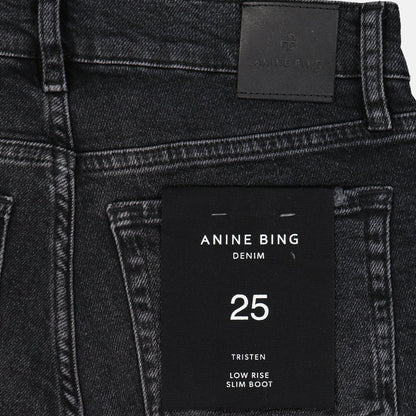 Tristen 블랙 플레어 진은 일상에서 밤 외출까지 자연스럽게 스타일을 전환할 수 있는 다재다능한 옷장 필수품입니다. 세련된 블레이저와 매치하면 사무실에 어울리는 룩을, 독특한 상의와 함께하면 밤 외출에 어울리는 모습으로 변신할 수 있습니다. 이 진은 Anine Bing의 럭셔리하고 현대적인 스타일에 대한 헌신을 보여줍니다.