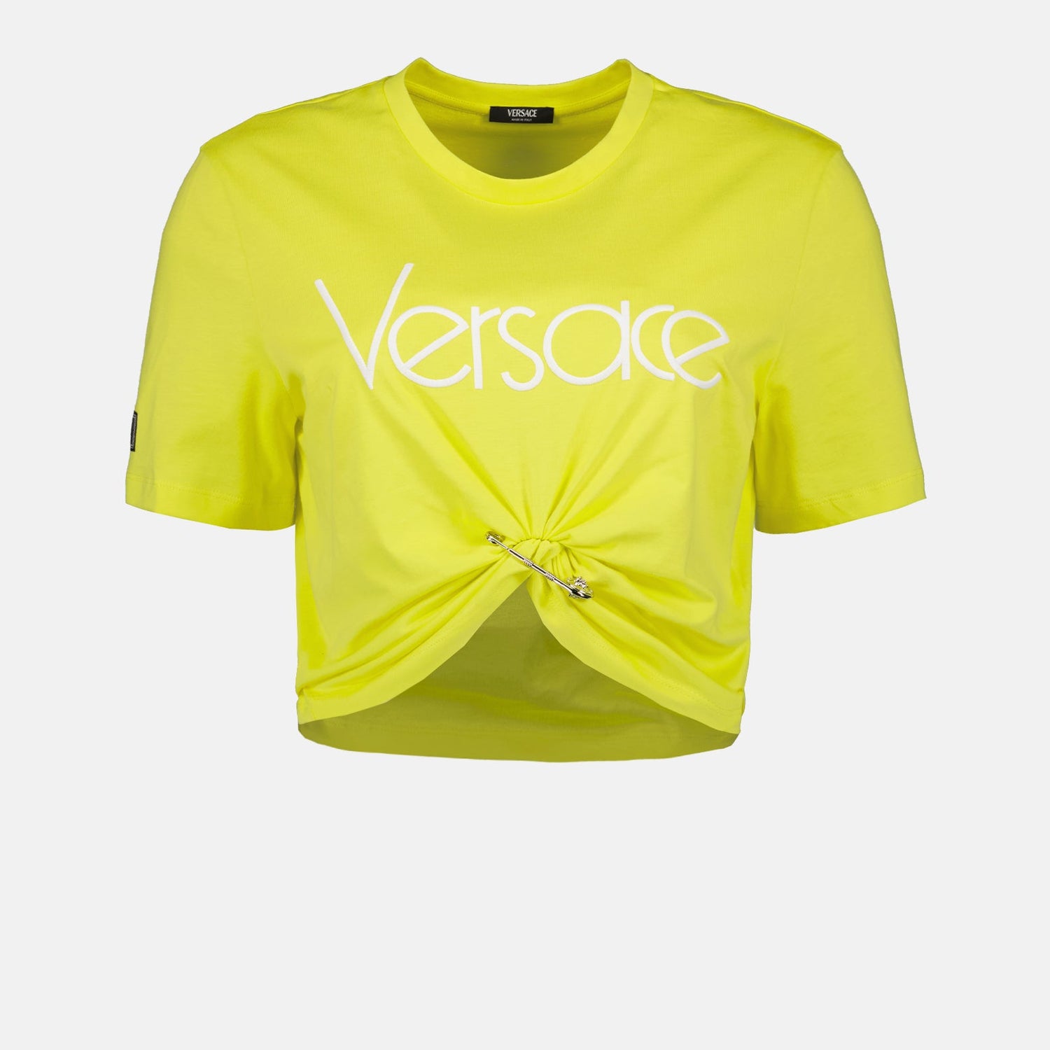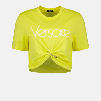 Versace의 옐로우 크롭 티셔츠 1978 리에디션으로 클래식의 재탄생을 경험해보세요. 이 스타일리시한 크롭 티셔츠는 화려한 옐로우 색상으로 고급스러운 옷장에서 눈에 띄는 아이템입니다.