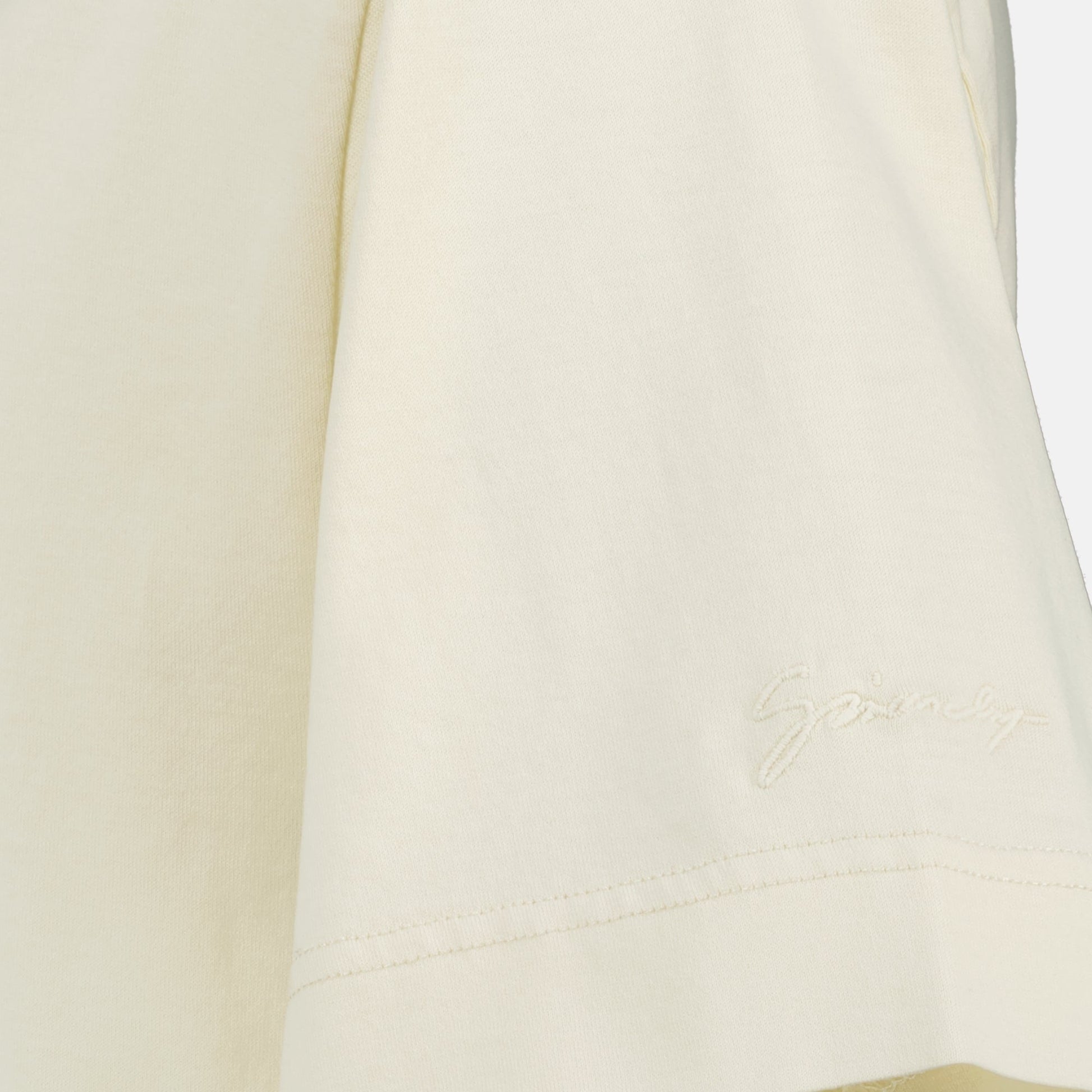 Introducing the 4G printed beige T-shirt from Givenchy, a remarkable piece made from soft, organic cotton. This shirt features a classic round neckline and short sleeves, complemented by a straight cut for a relaxed fit. The iconic 4G logo is prominently displayed on the front, while the Givenchy signature is elegantly embroidered on the sleeve, adding a touch of sophistication. Perfect for everyday wear or layering under a jacket, this T-shirt embodies a blend of contemporary style and comfort.