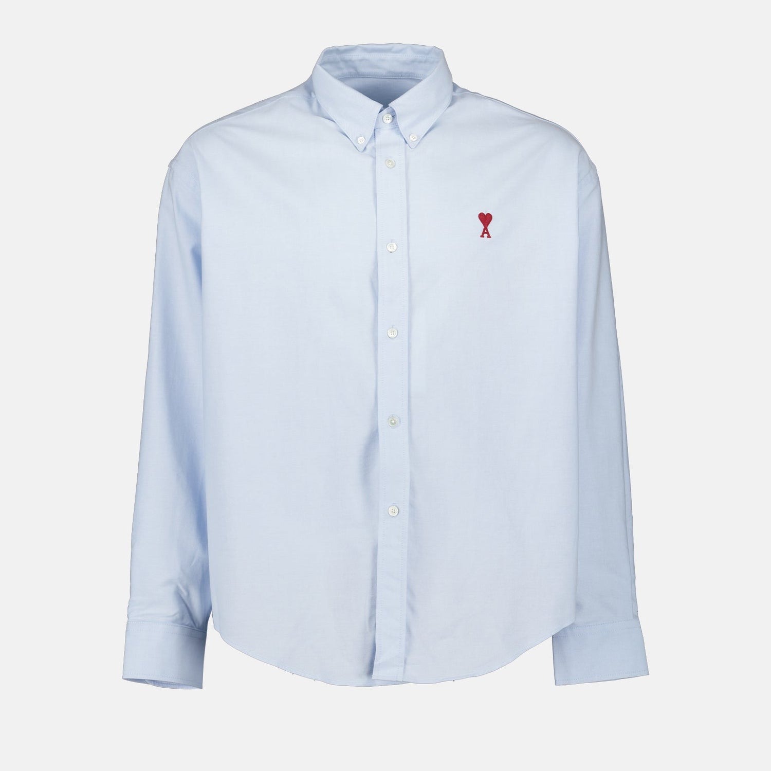 Introducing the Ami de Coeur Blue Shirt by AMI Paris, an exquisite piece designed for both women and men. This luxury shirt features a classic blue tone, rendered in premium fabric that ensures a sophisticated and comfortable wear. The highlight of this chic garment is the signature Ami de Coeur embroidery, subtly placed on the front, embodying the brand's timeless elegance and attention to detail.