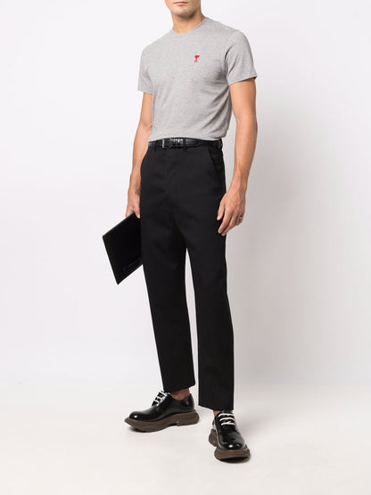 The Ami de Coeur Grey T-Shirt by renowned designer AMI Paris brings a touch of effortless elegance to your wardrobe. Crafted from premium grey cotton, this unisex T-shirt features the iconic Ami de Coeur logo embroidered on the chest, symbolizing love and friendship, hallmark values of the brand.