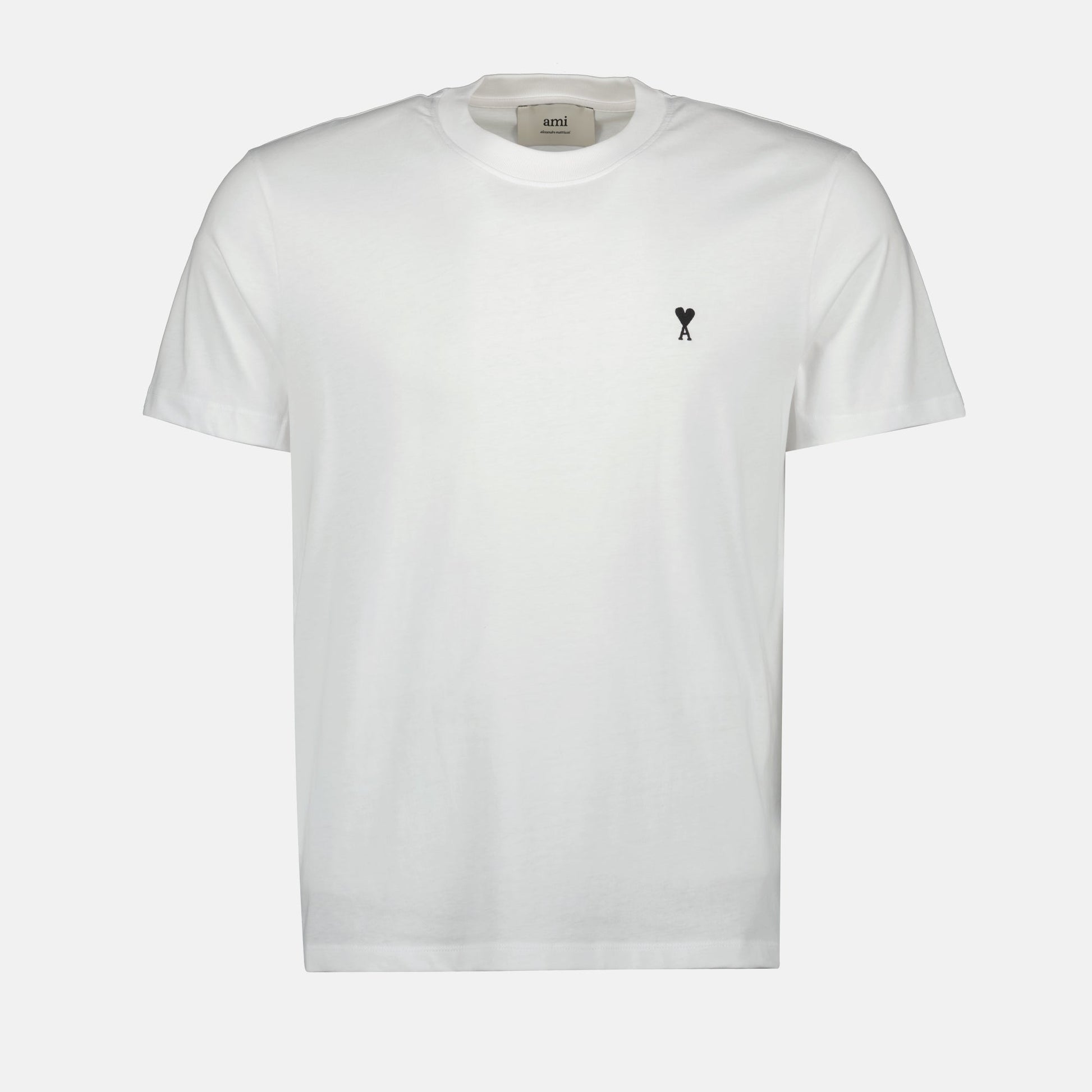 The Ami de coeur T-shirt is a classic addition to any wardrobe, designed by Ami Paris. This white T-shirt is made from soft cotton and features a round neck and short sleeves, ensuring a comfortable fit. Its straight cut flatters a variety of body types. The standout detail is the embroidered Ami de coeur logo on the chest, complemented by Ami's signature embroidery on the back. Available in multiple colors, this versatile piece is perfect for everyday wear, effortlessly pairing with jeans or tailored trousers.