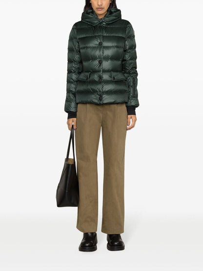 The Armonique down jacket features a plush down filling, ensuring optimal warmth and comfort. Its versatile green hue enhances its timeless appeal, making it a perfect match for a variety of ensembles. The jacket is equipped with practical details such as a high collar, secure zip fastening, and functional pockets, elevating its practicality without compromising on style.