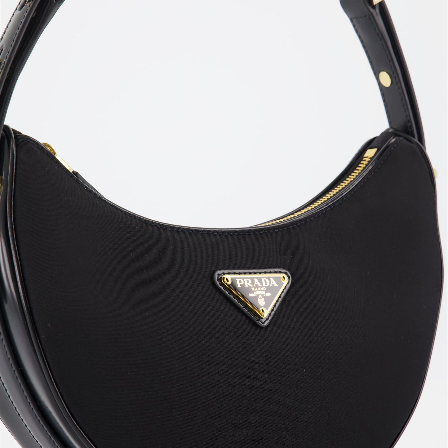 Prada, Arqué Shoulder Bag, Re-Nylon, Brushed Leather, Luxury Accessories