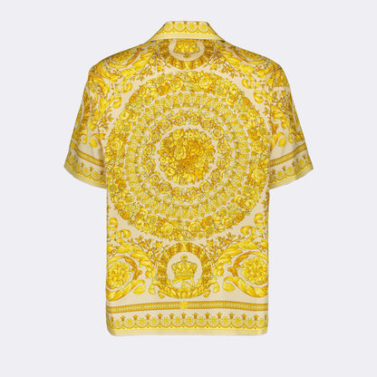 Immerse yourself in the splendor of Versace with the Barocco Silk Shirt, a luxurious creation crafted meticulously in vibrant yellow silk. This exquisite shirt showcases the iconic Barocco patterns, adding a bold yet sophisticated touch to your ensemble. Versace's commitment to timeless elegance and high-end fashion is truly captured in this piece, making it a quintessential addition to any distinguished wardrobe. The fluidity and sheen of the premium silk enhance the shirt's luxurious feel, offering both comfort and style. Embrace the opulence of Versace and make a grand statement with the Barocco Silk Shirt.