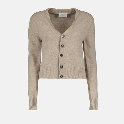 Enhance your wardrobe with the exquisite beige Cardigan Ami de Coeur for Women by AMI Paris. This refined cardigan is meticulously crafted from high-quality materials, ensuring both comfort and durability. Its beige hue exudes timeless elegance, making it a versatile addition to any stylish ensemble. The piece is adorned with AMI Paris' iconic heart emblem, subtly embroidered to signify luxury and exclusivity. Designed for the modern woman, this cardigan perfectly balances style and sophistication, ideal for both casual and formal occasions. Immerse yourself in the allure of French design with this stunning yet understated piece.