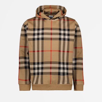 Experience the epitome of luxury with the Burberry beige plaid hoodie for men. This hoodie masterfully blends comfort with sophistication, featuring an iconic Burberry checked pattern that exudes timeless elegance. Crafted from premium materials, it ensures unparalleled softness and durability. The classic beige color enhances its versatility, making it a perfect addition to any high-end wardrobe. Whether you're dressing up for a casual outing or seeking an upscale loungewear piece, this hoodie meets all style and comfort demands. The attached hood and ribbed cuffs provide additional warmth and a snug fit.