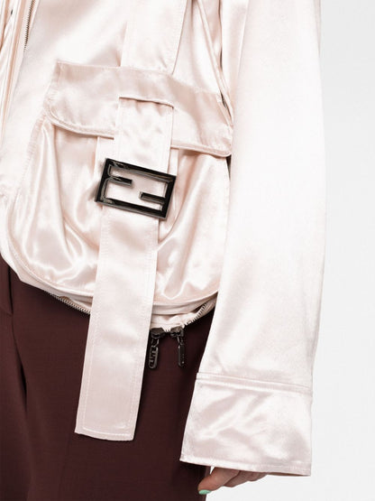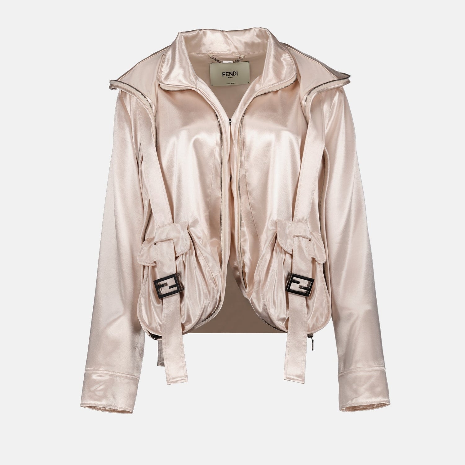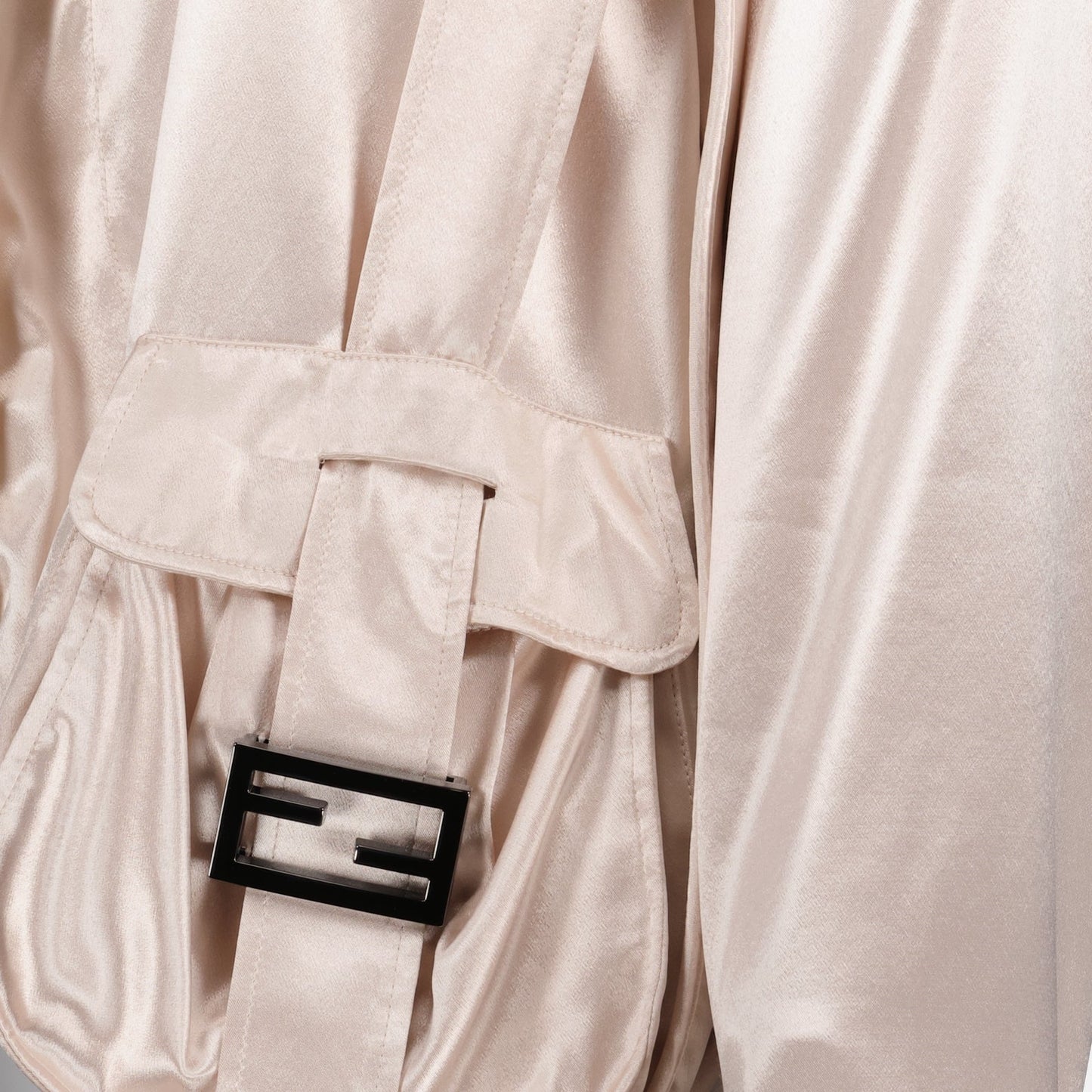 Indulge in the epitome of fashion excellence with Fendi's Beige Satin Blouson, designed for the modern, discerning woman.