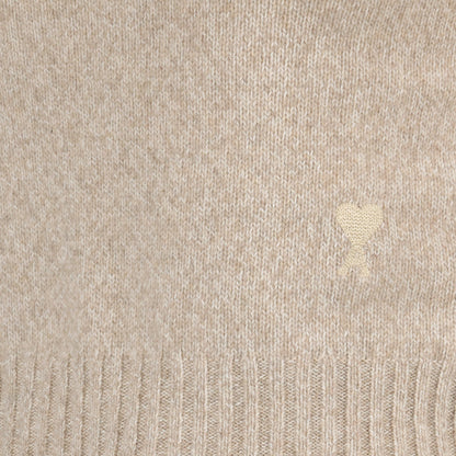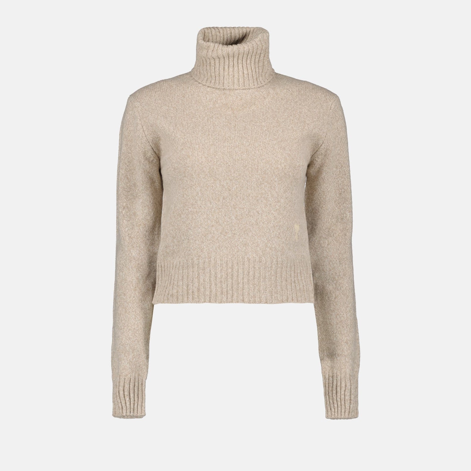 Introducing the exquisite beige turtleneck sweater from AMI Paris, a perfect blend of luxury and comfort designed for the discerning fashion-forward clientele. Crafted with meticulous attention to detail, this sweater features the iconic Ami de Coeur motif, emblematic of the brand's sophisticated yet understated elegance.