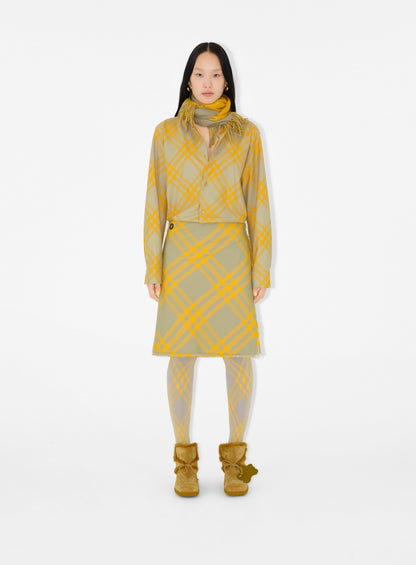The scarf features a captivating combination of beige and yellow hues, effortlessly blending to create a sophisticated and versatile appearance. The classic design embodies Burberry's commitment to luxury and style, ensuring it complements a wide range of outfits with ease.