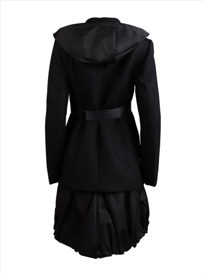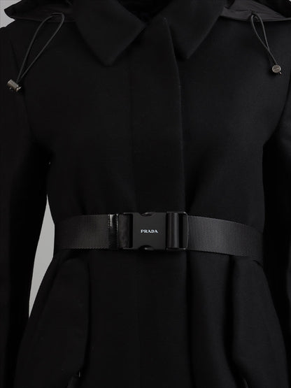 Whether you're attending a high-profile event or simply navigating the city streets, the Bi-material Black Coat promises to be a fashion-forward choice that resonates with Prada’s signature elegance. A must-have for any discerning wardrobe.