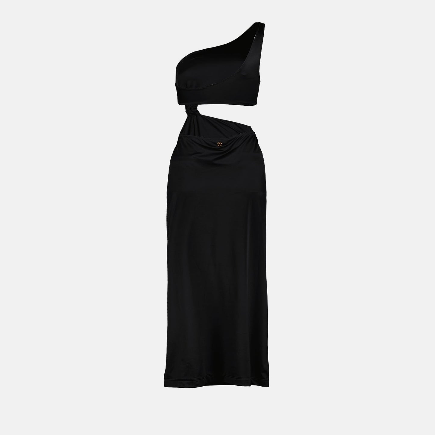 Discover the epitome of seaside elegance with the Black Beach Dress for Women by Versace. This stunning piece, crafted from high-quality fabric, features a flowing silhouette that effortlessly drapes over the body, ensuring both comfort and sophistication. The deep black hue enhances its versatility, making it an essential addition to your beach wardrobe. Designed with subtle yet distinctive branding, this beach dress exemplifies Versace's commitment to luxury and exquisite craftsmanship.