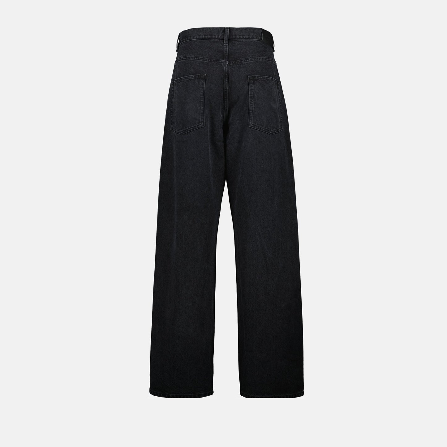 Enhance your style with these black denim jeans from Saint Laurent, crafted with precision for the Spring-Summer 2025 collection. The carrot cut offers a modern silhouette, while the delicate zip closure and magnetic loops add a touch of sophistication. Designed with a classic five-pocket layout and a refined leather logo patch, these jeans seamlessly blend functionality with elegance. The faded black hue lends a contemporary edge suitable for any occasion, while the belt loops provide versatility for styling. Elevate your everyday look with this essential piece.