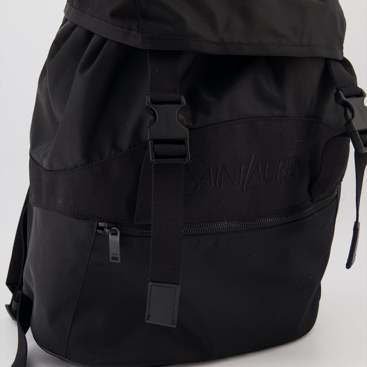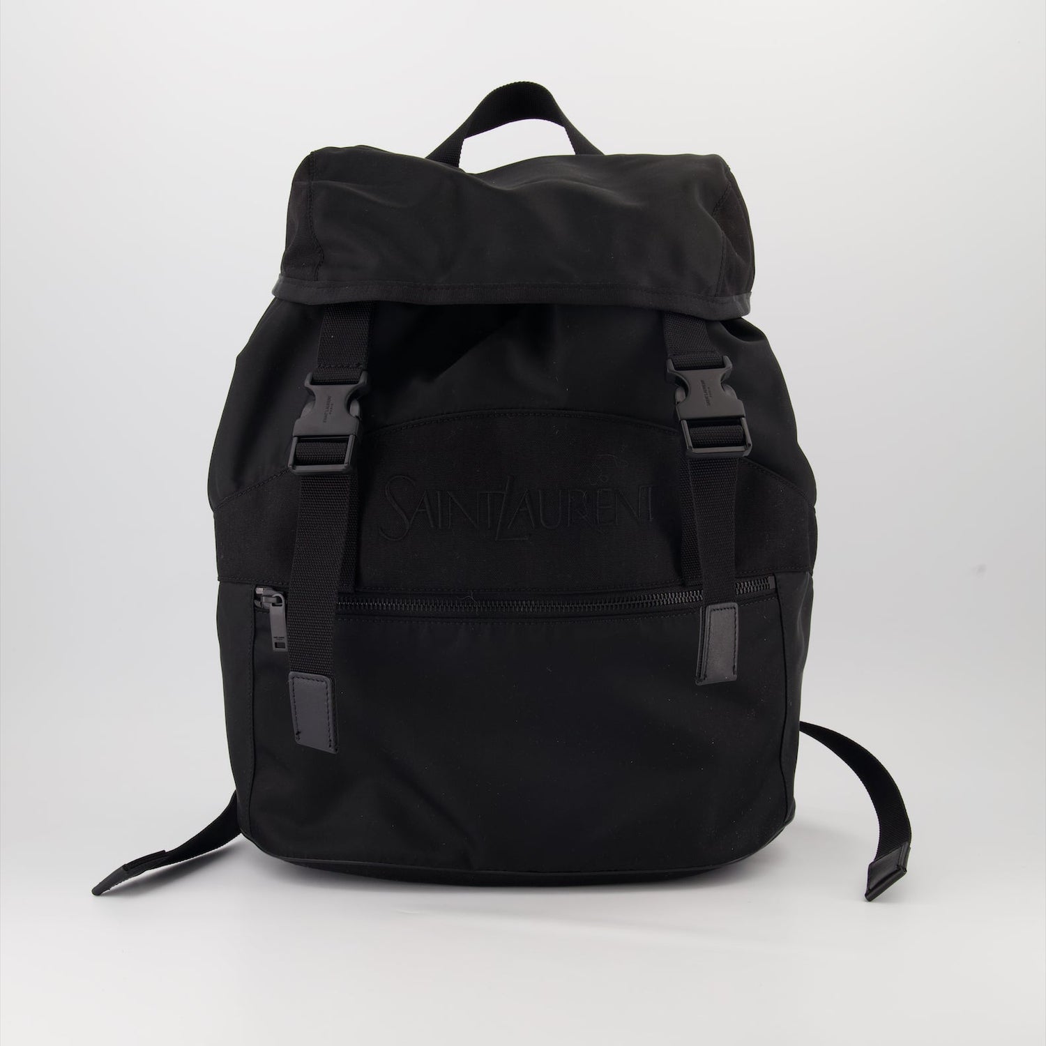 The structured silhouette offers ample space for your essentials, making it ideal for both everyday use and travel. Details such as the subtle Saint Laurent logo on the exterior, adjustable shoulder straps, and multiple compartments ensure that this backpack is both practical and luxurious. Whether you're heading to the office or exploring the city, this backpack is a timeless addition to your collection.