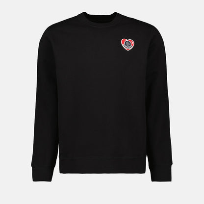 luxury sweatshirt, Moncler, black sweatshirt, heart logo, high-end fashion