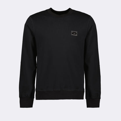 luxury sweatshirt, black sweatshirt, Dolce & Gabbana apparel, designer clothing, logo plaque sweatshirt