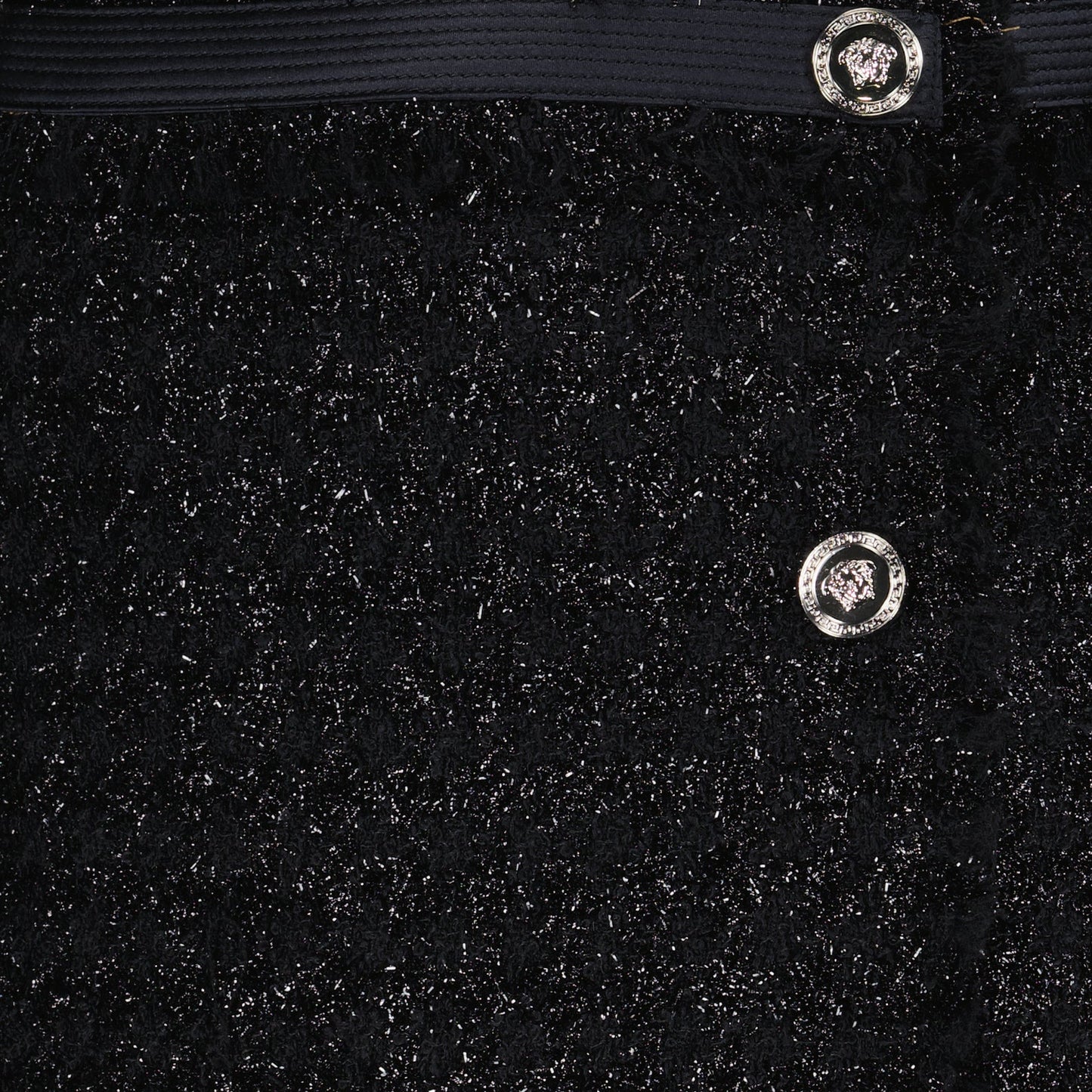 Unveil your elegance with the Black Mini Skirt by Versace, designed exclusively for women. This mini skirt epitomizes luxury and sophistication, showcasing the renowned Versace craftsmanship. Made with high-quality fabric, the skirt features a sleek and refined silhouette that flatters the figure. The rich black hue adds a timeless touch to your ensemble, making it a versatile piece for both casual and formal occasions.
