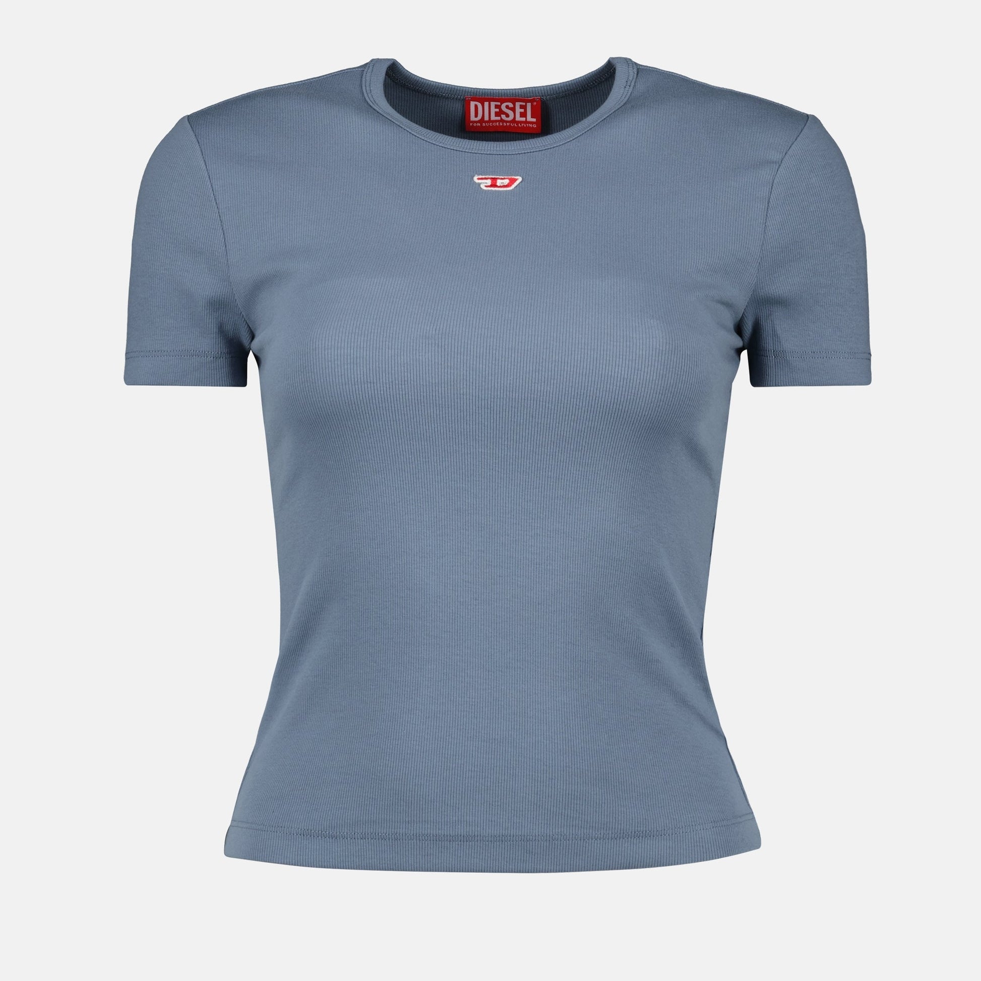 Introducing the T-Ele-Long blue T-shirt, a stylish staple for your collection. This piece showcases a classic round neck and short sleeves, designed in a slim fit that flatters the silhouette. The subtle logo embroidery adds a refined touch to the denim blue-grey fabric, making it perfect for casual outings or laid-back gatherings.