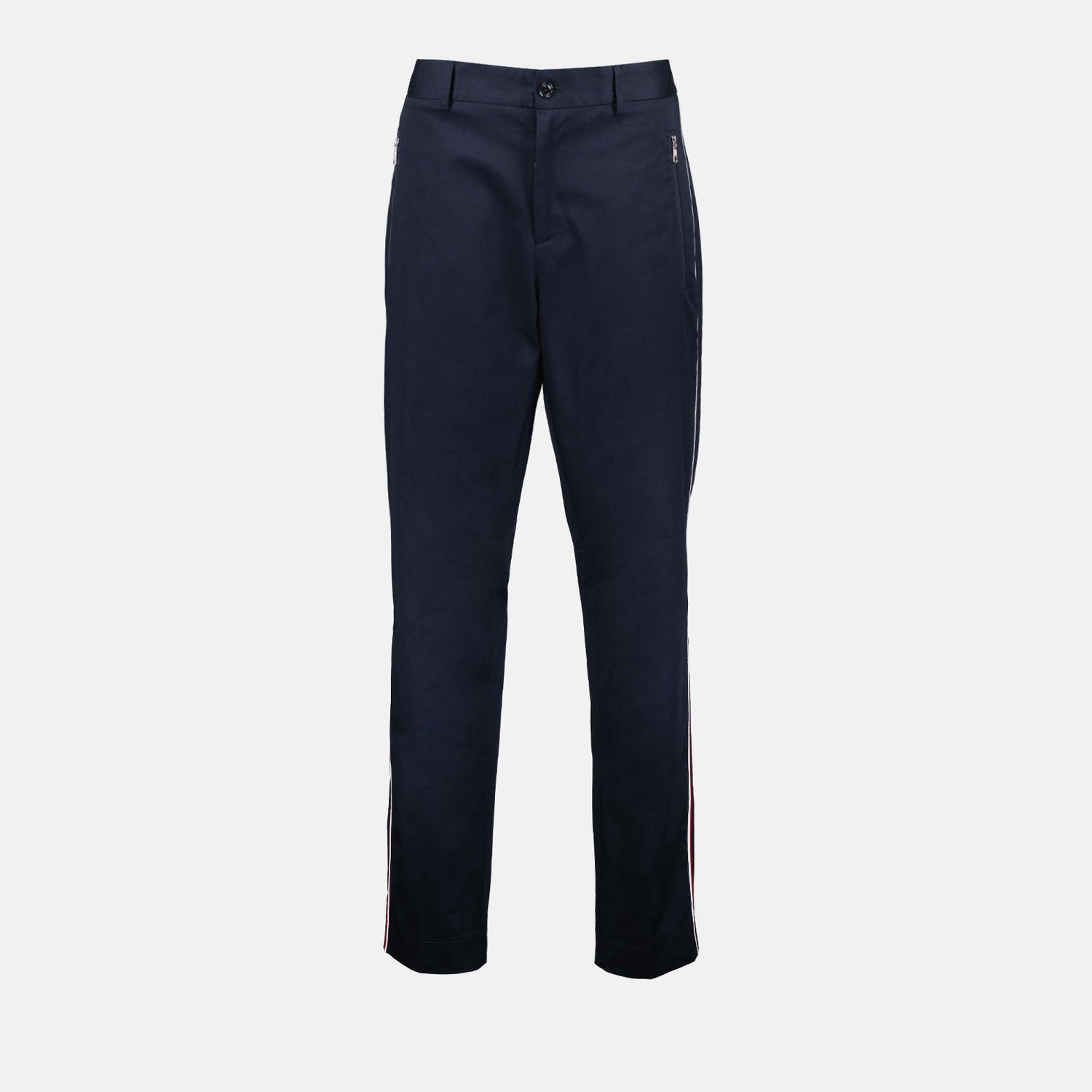 Step into sophistication with the Moncler blue tailored trousers for men. Designed for those who appreciate timeless elegance, these trousers highlight Moncler's dedication to premium craftsmanship and luxurious fabrics. The deep blue hue adds a versatile touch, fitting seamlessly into both professional and refined casual wardrobes. Impeccably stitched and tailored, these trousers offer a flattering fit that enhances your silhouette while ensuring comfort throughout the day. Moncler's discreet branding adds a sophisticated touch, making these trousers an essential addition to any high-end wardrobe.