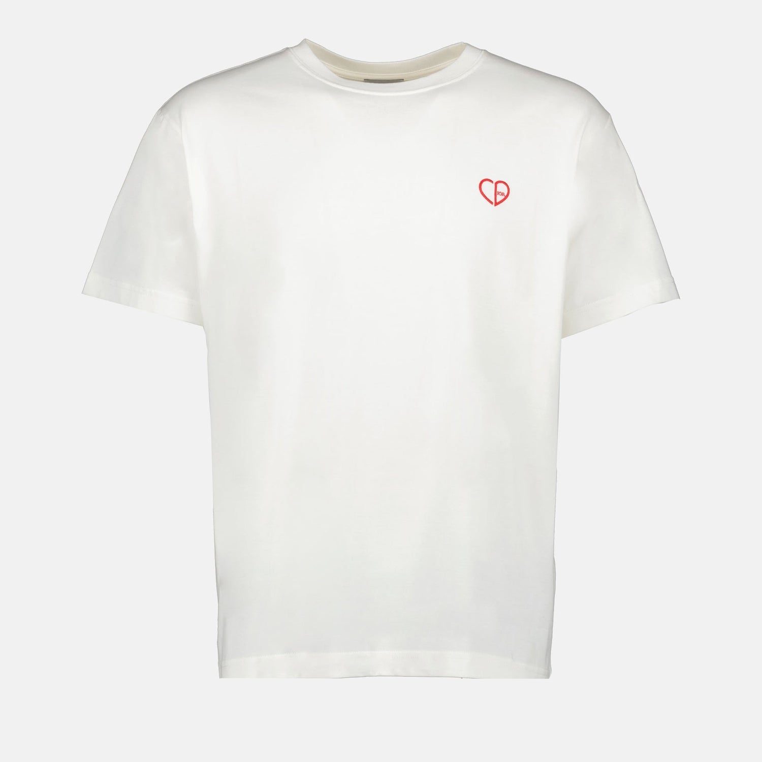 Introducing the CD Heart Crew Neck T-Shirt from Dior's Autumn-Winter 2024 collection. This immaculate white t-shirt is crafted from the finest cotton, offering a soft and comfortable wear. The minimalist design features a subtle yet distinguished CD heart emblem, adding a touch of sophistication to your everyday style. With a classic round neck and short sleeves, this t-shirt promises a perfect blend of elegance and casual ease.