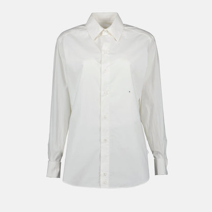 Introducing the Chemise M in Cotton Poplin for women, a sophisticated creation by the iconic Maison Margiela. This exquisite shirt is tailored from high-quality cotton poplin, ensuring both comfort and durability. The minimalist design is highlighted by a refined silhouette, making it a versatile piece for any elegant wardrobe.
