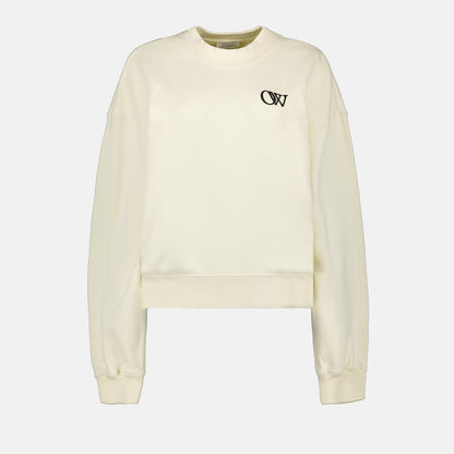 The sweatshirt is designed for both comfort and style, with a relaxed fit that drapes beautifully. Its high-quality material ensures durability while providing a soft and cozy feel against the skin. Whether dressing down for a casual outing or elevating your loungewear, this Off-White sweatshirt stands out with its unique aesthetic.