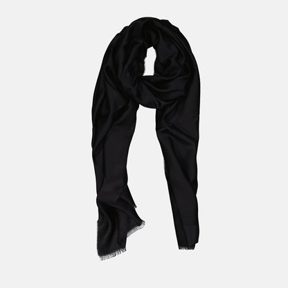 Introducing the epitome of luxury and elegance—our Givenchy Black Silk and Wool Scarf for Women. This stunning scarf combines the finest silk and wool, offering a soft, warm touch against your skin, perfect for any season. The deep black hue adds a timeless appeal, making it a versatile addition to your wardrobe.