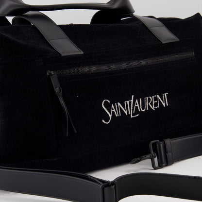 Step into sophistication with the Saint Laurent elegant black travel bag. This luxurious bag features the iconic Saint Laurent logo, imbuing each journey with a touch of prestige and style. With its smooth, sleek black exterior and refined logo detailing, this travel bag is a testament to Saint Laurent's dedication to timeless elegance and high-end craftsmanship.