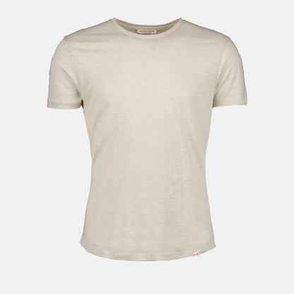 The Orlebar Brown OB-T Linen T-Shirt in a sophisticated beige tone is the epitome of understated luxury. Crafted with precision, this T-shirt offers unparalleled comfort and style, making it a must-have addition to the modern gentleman's wardrobe. Lightweight and breathable, the fine linen fabric ensures you stay cool and elegant in any setting. The minimalist design, combined with the brand's signature attention to detail, showcases an effortlessly chic aesthetic that complements both casual and semi-formal outfits. Elevate your everyday look with this timeless piece from Orlebar Brown.