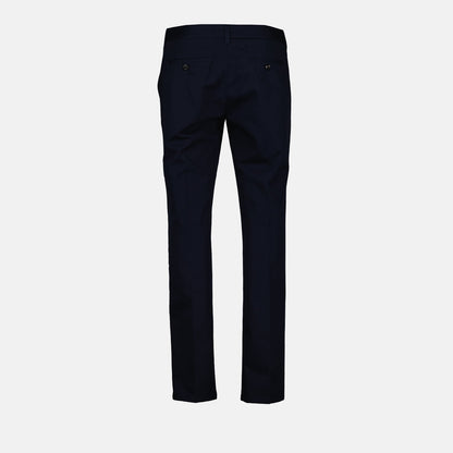 Indulge in the sophisticated design of the AMI Paris navy blue chino pants for men. Crafted with meticulous attention to detail, these trousers feature a slim yet comfortable fit that underscores the brand's commitment to quality and style. The deep navy blue hue provides a versatile addition to any wardrobe, suitable for both casual and semi-formal occasions.