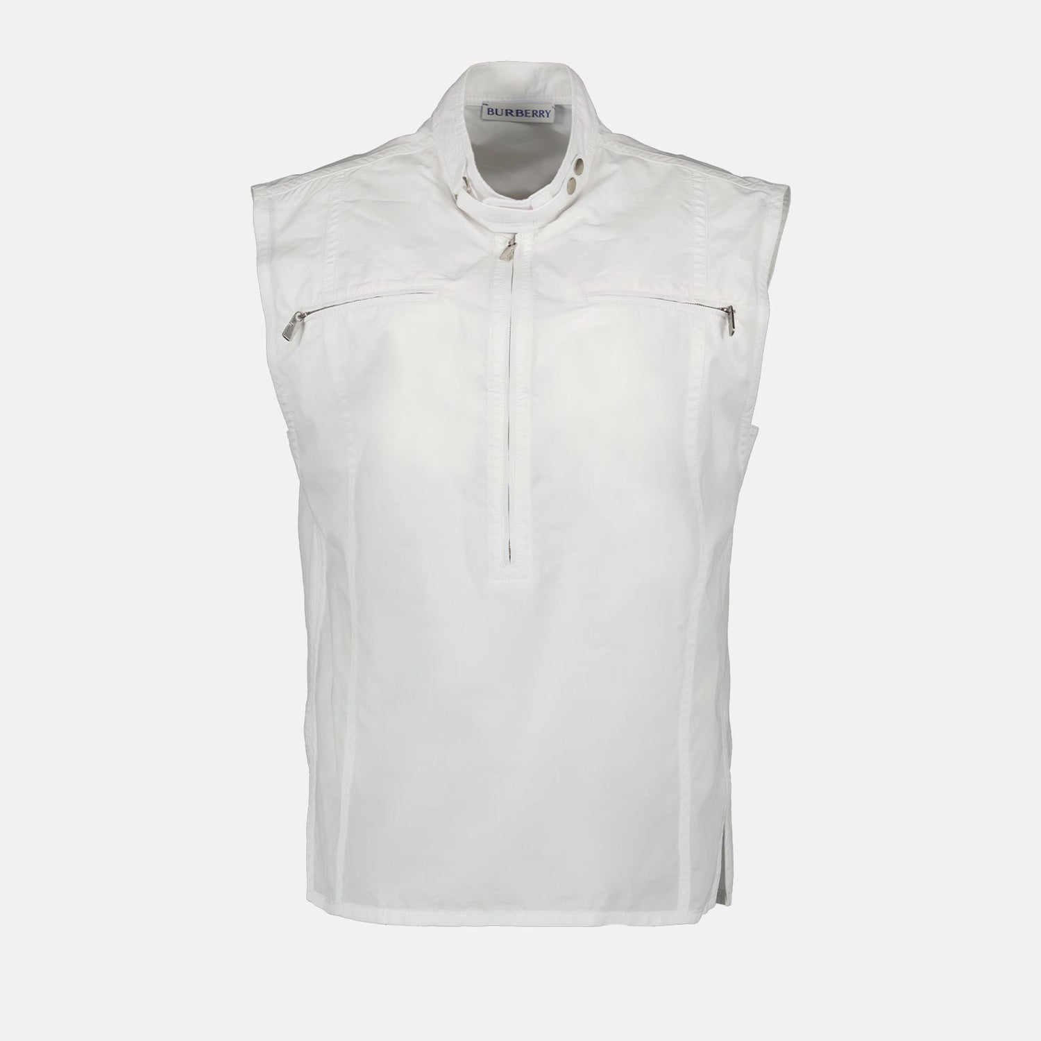 Explore the epitome of refined elegance with this sleeveless poplin top by Burberry. Crafted in premium cotton poplin, this top features an exquisite tailored cut that enhances its clean and timeless silhouette. The high-quality fabric showcases a soft sheen, while the precisely designed shape ensures a comfortable and flattering fit for distinguished style. Perfect for any occasion, this versatile piece embodies luxury and sophistication, making it a staple addition to any discerning wardrobe.