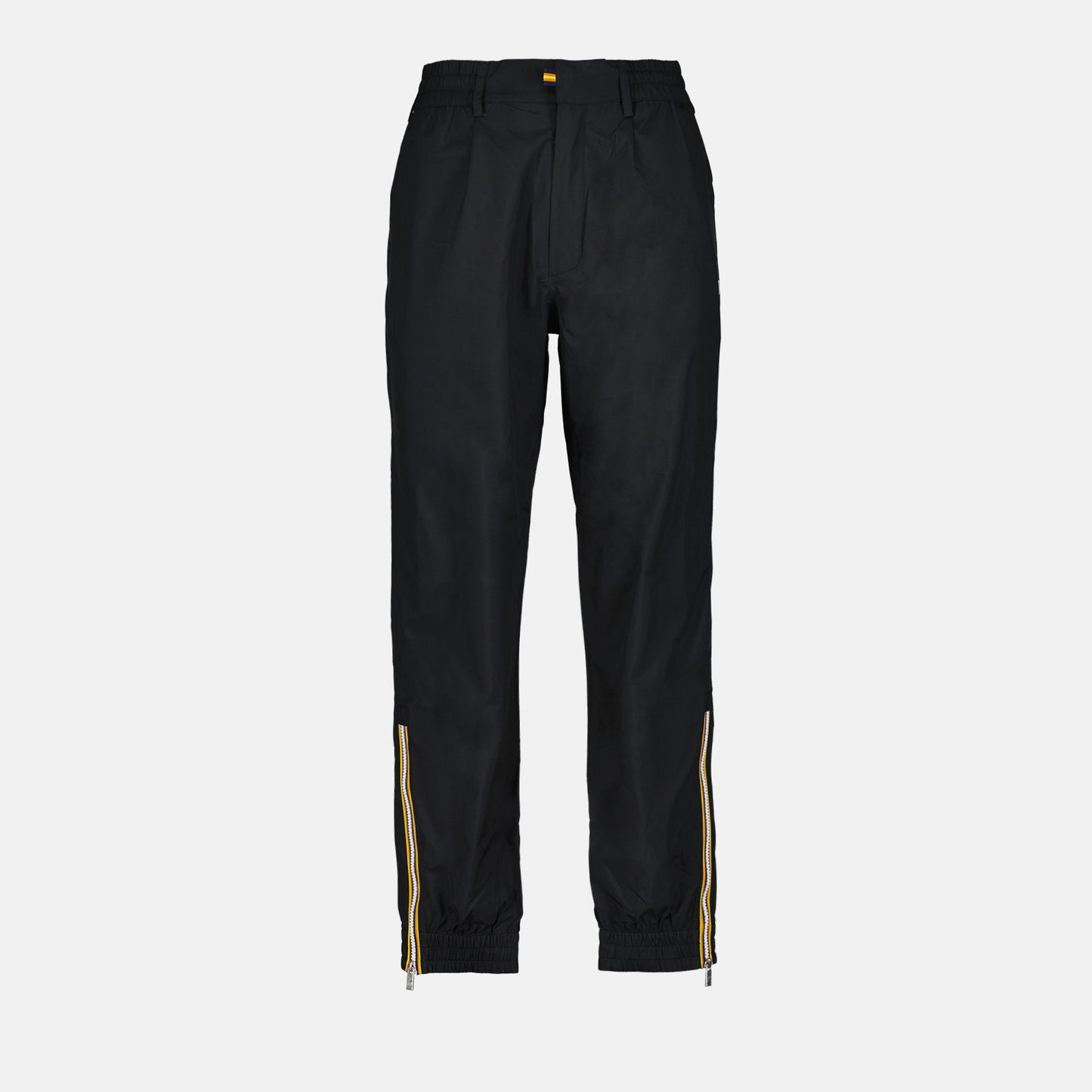 The sleek design features minimalistic detailing, ensuring a clean and polished look suitable for various occasions. Flat front styling and perfectly aligned seams enhance the refined silhouette, showcasing the meticulous craftsmanship synonymous with K-Way.