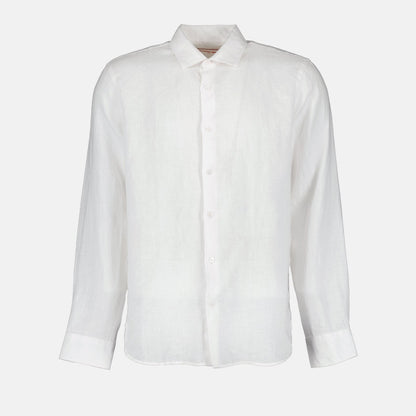 Orlebar Brown, White Linen Shirt, Luxury Menswear, Elegant Shirt, High-End Clothing