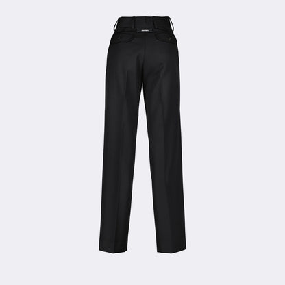 Introducing the Palm Angels wool trousers, a must-have addition to any refined wardrobe. These tailored trousers are meticulously crafted from luxurious wool, offering not only unparalleled comfort but also a sophisticated aesthetic perfect for both business and evening wear. Featuring a classic fit that accentuates the wearer's silhouette, they boast fine detailing such as expertly tailored seams and a polished finish. Elevate your style with these timeless trousers that seamlessly blend modern elegance and traditional craftsmanship.