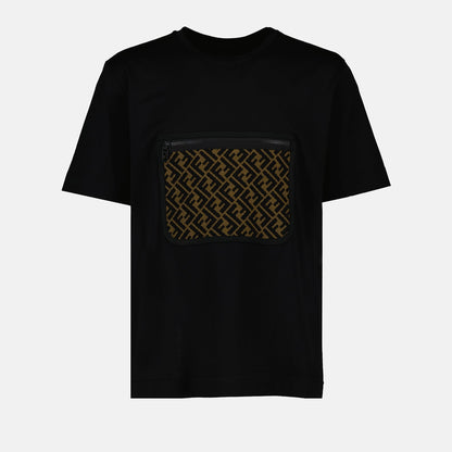 What sets this T-shirt apart is the distinctive and functional zip pocket adorning the chest, complete with the revered FF motif print, marking it as a piece of high-end fashion lineage. Whether you're stepping out for a casual brunch or an evening stroll, this T-shirt adds a touch of luxury to your attire.