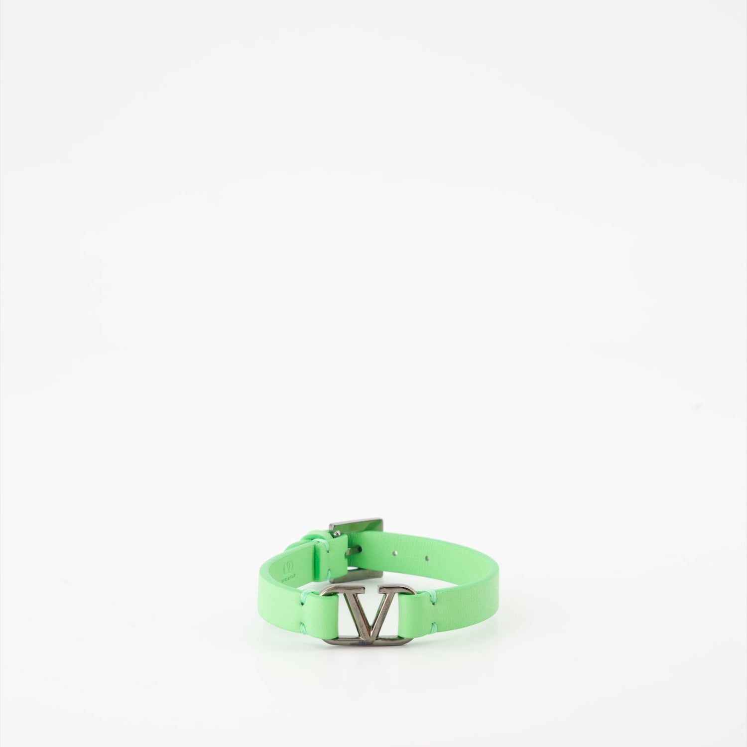 Embrace timeless elegance with the Valentino Garavani VLogo Signature bracelet in striking green leather. This exquisite piece showcases the iconic VLogo, crafted to perfection to suit the modern luxury enthusiast. Designed with meticulous attention to detail, the bracelet offers a refined choice for those who appreciate subtle sophistication. The rich green leather combined with the signature VLogo makes it an ideal accessory to complement any outfit, adding a touch of class and exclusivity to your style.