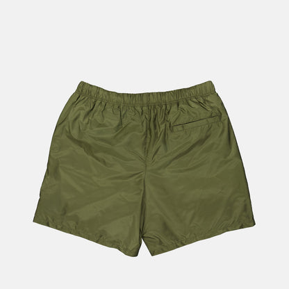 Embody sophistication with Prada's green logo swim shorts, a distinguished choice for the modern man who values both comfort and style. Crafted from high-quality materials, these shorts provide a luxurious touch that is unmistakably Prada. The elegant green hue complements the sleek design, making these swim shorts a versatile addition to any summer wardrobe. Key features include a comfortable fit and the iconic Prada logo strategically placed, ensuring that your impeccable taste does not go unnoticed. Make every swim an experience in luxury with these exclusive Prada swim shorts.
