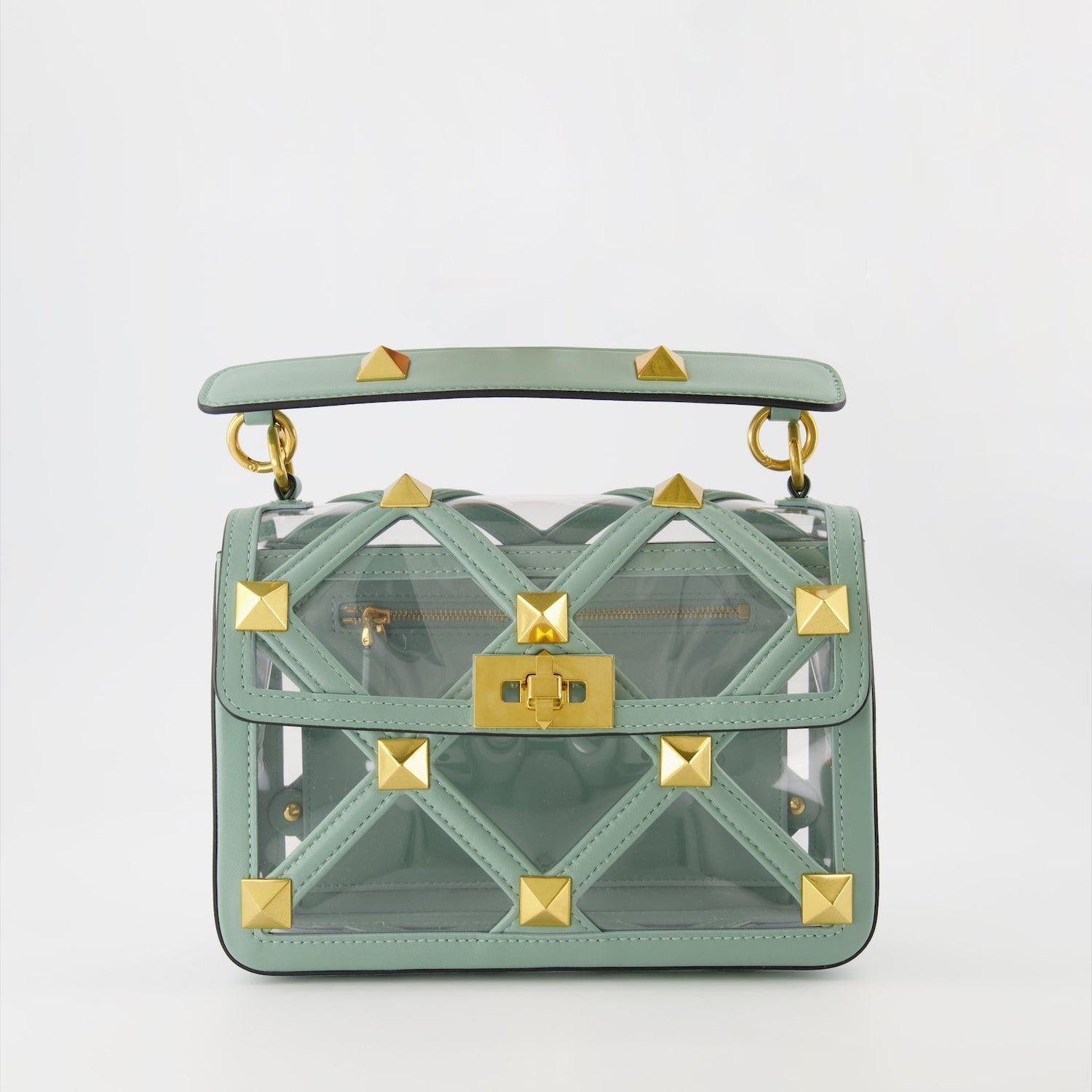 Introducing the Green Roman Stud Chain Bag by Valentino Garavani, a sublime accessory that embodies elegance and sophistication. Crafted in a striking green hue, this bag is adorned with the distinctive Roman studs, hallmarking Valentino Garavani's iconic design ethos. The bag features a luxurious chain strap that seamlessly blends functionality with style, making it perfect for both day and evening wear. Its spacious interior ensures ample room for your essentials, while the high-quality materials guarantee durability and timeless appeal. Elevate your ensemble with this exquisite statement piece from Valentino Garavani.