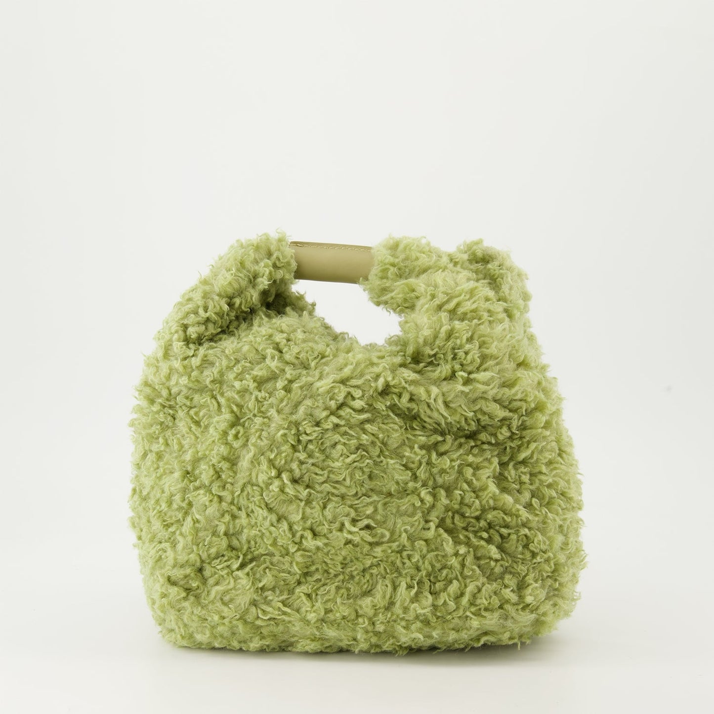 Introducing the MM6 Green Shoulder Bag, part of the coveted Autumn-Winter 2024 collection. This luxurious piece combines high-quality leather with textured wool-effect fabric, embodying a sophisticated yet contemporary aesthetic. Its vibrant green hue makes a striking statement, ideal for adding a pop of color to any outfit.