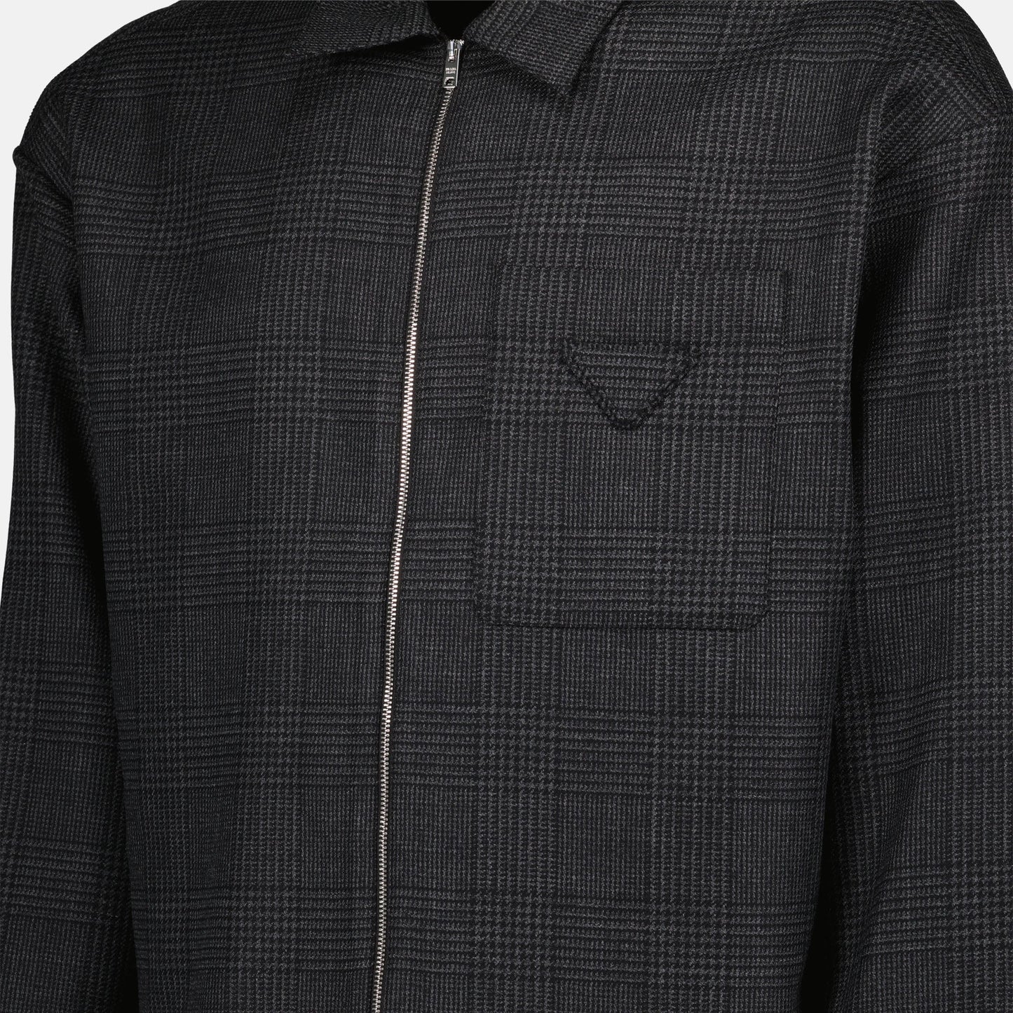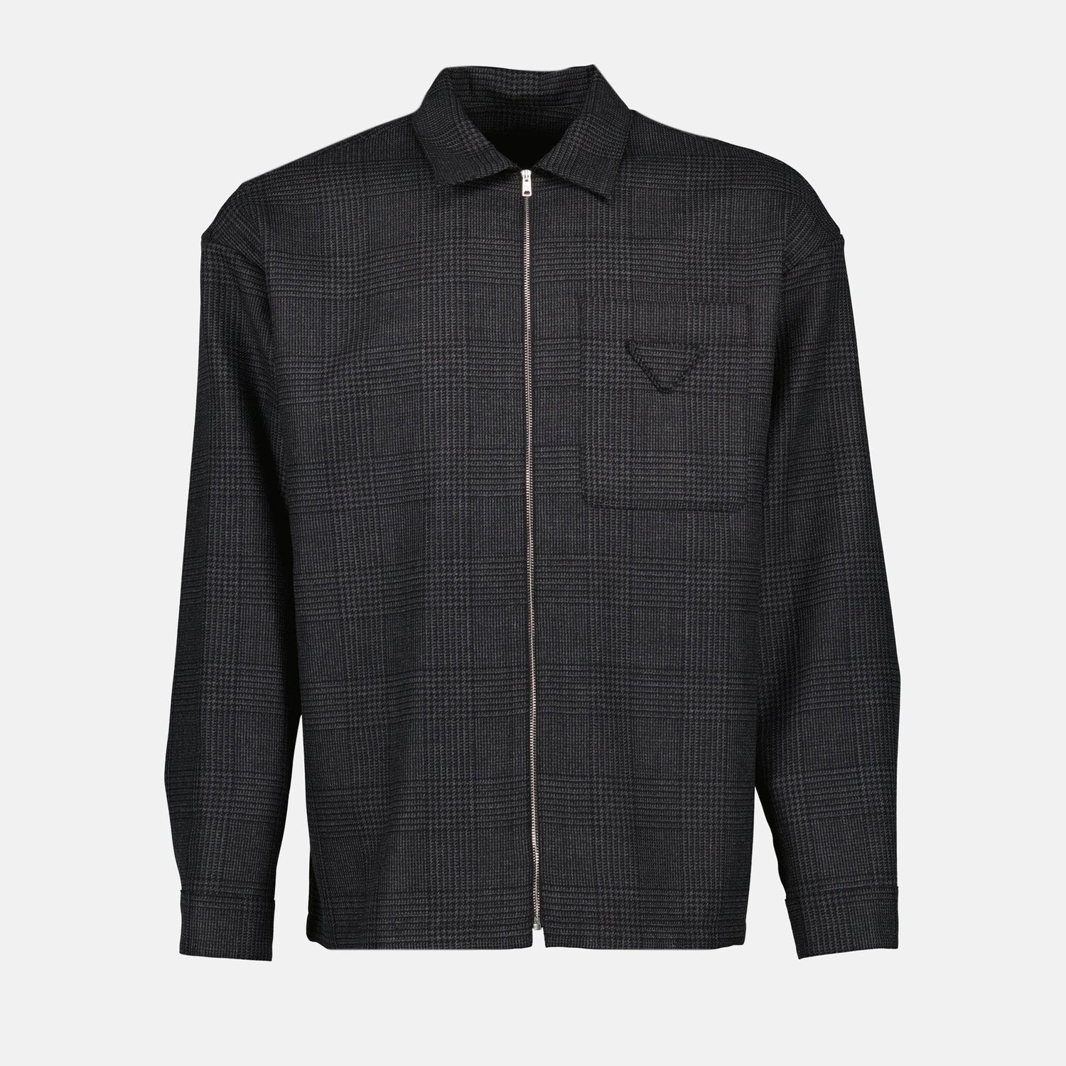 Introducing the Grey Shirt Jacket by Prada, a masterpiece from the Autumn-Winter 2024 collection. This elegant piece is meticulously crafted from premium wool, ensuring superior comfort and durability. The jacket showcases a refined grey hue, highlighting Prada's commitment to timeless style.