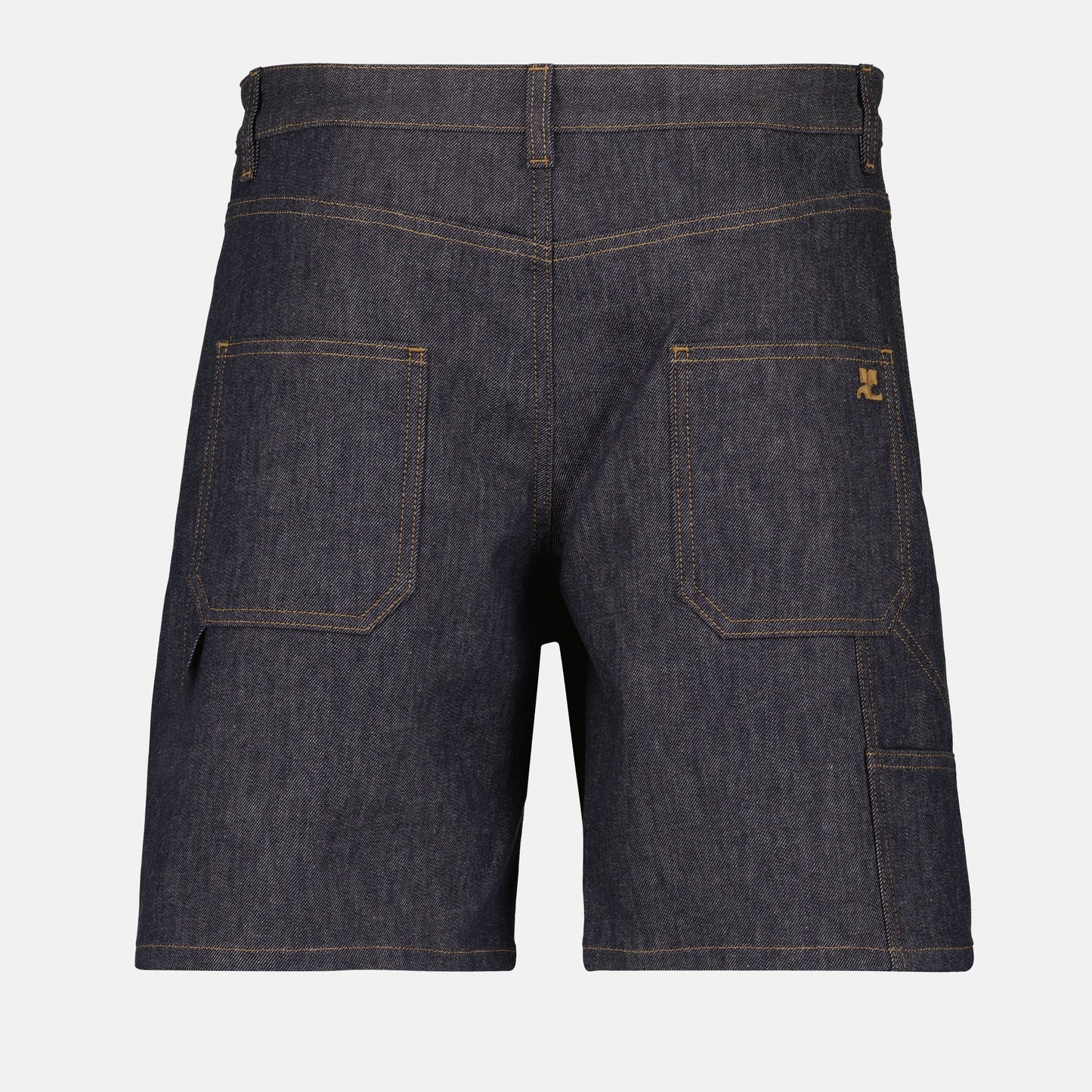The Hammer shorts from Courrèges are a stylish addition to any summer wardrobe. Made from a soft twill fabric, they feature a wide cut for comfort and ease of movement. The classic blue-gray denim is accented by practical design elements, including five pockets and a discreetly embroidered logo. A zip closure alongside magnetic loops enhance the overall refined look, making these shorts functional and fashionable. Ideal for warm days, these versatile shorts are sure to elevate your casual ensembles.