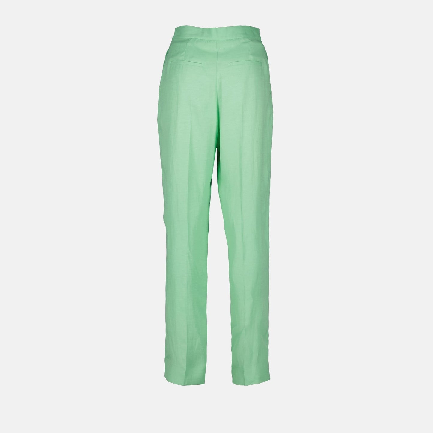 Elevate your wardrobe with these exquisite pleated trousers by renowned designer Stella McCartney. Rendered in a refreshing mint green, these high-waisted trousers offer a perfect blend of contemporary flair and timeless elegance. The tailored pleats add a sophisticated touch, making it an ideal piece for various occasions. Crafted with precision, the trousers feature a flattering silhouette that complements the feminine form. Whether paired with a chic blouse or a simple top, these trousers effortlessly enhance your ensemble with a touch of high-fashion luxury.