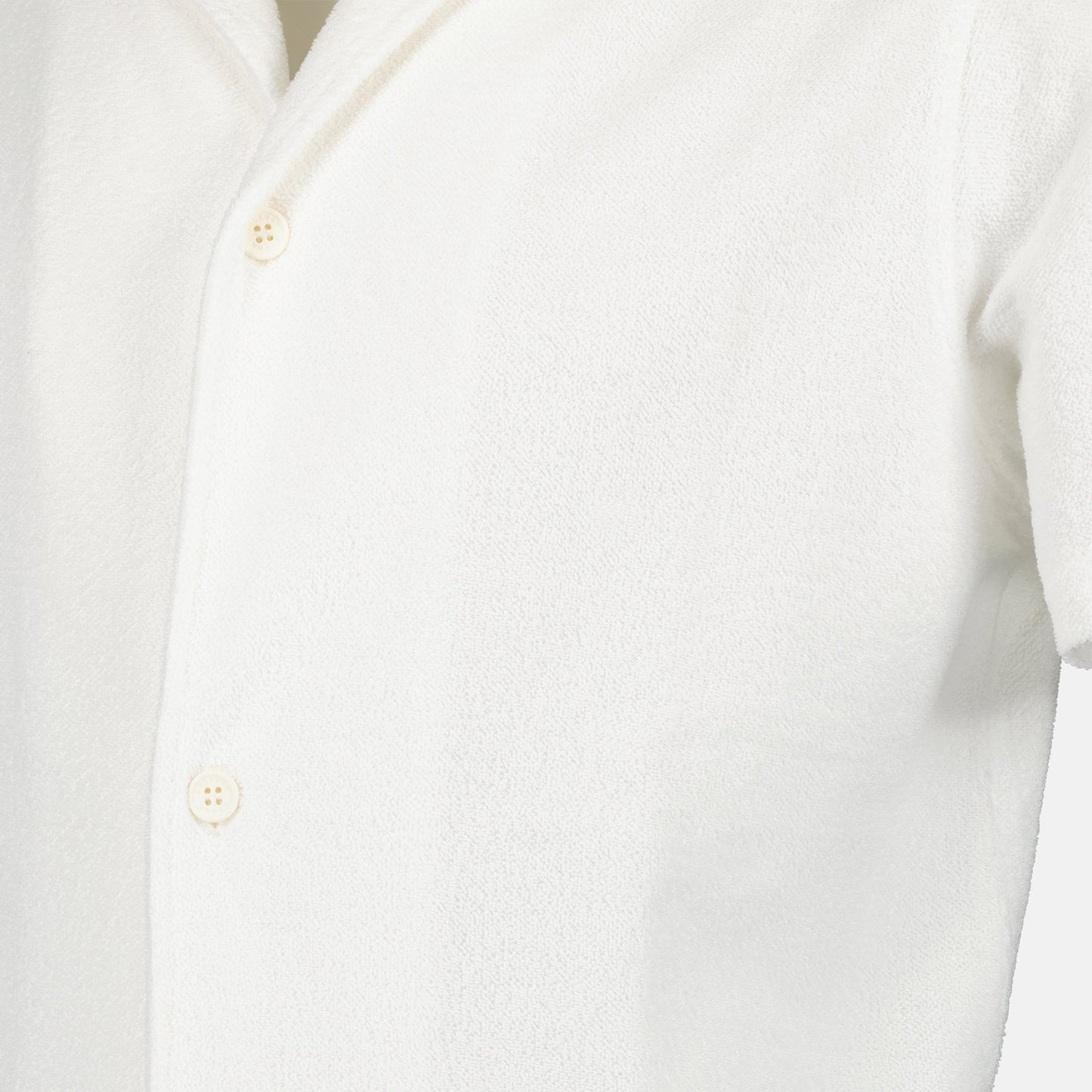 The Howell Terry Cloth Shirt is a pristine addition to any wardrobe. Carefully crafted from organic cotton, this shirt offers a luxurious yet understated feel. Its smooth texture and pure white hue provide a versatile canvas for any ensemble, whether for a casual day out or a refined evening gathering.