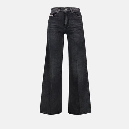 Embark on a journey of style with Diesel's Jean D-Akemi Noir, a signature piece from their Spring-Summer 2025 collection. Designed with a wide silhouette, this jean is polished in a faded black hue, offering a modern twist on a classic. Enveloped in a blend of cotton and elastane fabric, it assures comfort without compromising on style. Highlighting a five-pocket design paired with a button and zip fastening, and finished with the iconic Diesel Industry embroidery and a leather label, this piece subtly nods to its rich heritage. Available in a length of 28, enhancing its laid-back yet refined aesthetic, perfect for a chic day out or a relaxed evening. Elevate your ensemble with this timeless addition, where tradition meets modern chic.